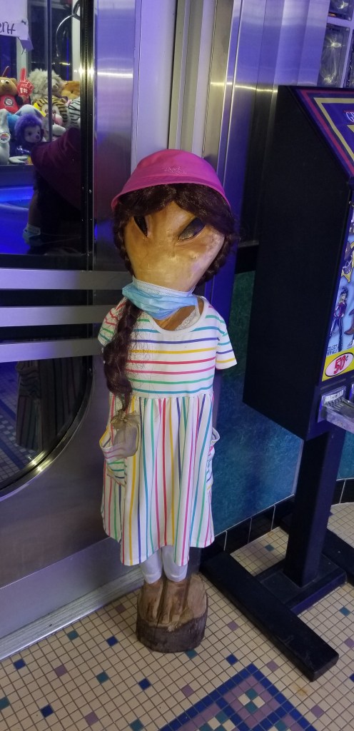 After finishing my delicious open-face turkey sandwich we paid the bill and noticed alien masks and decor all over the front register. We also saw posters for alien themed events. We decided to inquire about all the alien paraphernalia and the waitress told us that Pine Bush is a hub for alien and UFO enthusiasts.